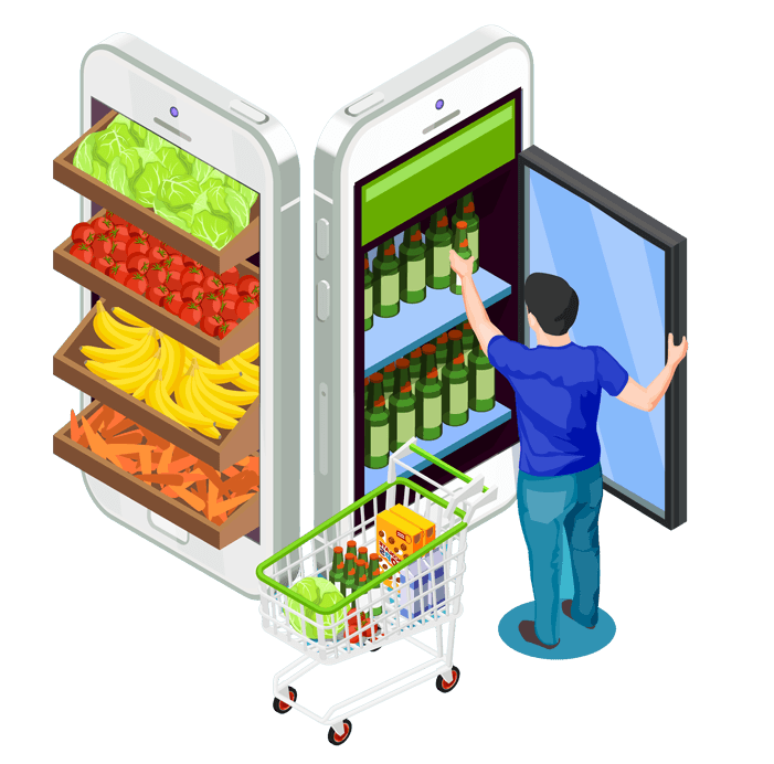 السوبر ماركت هو متجر للخدمة الذاتية يقدم مجموعة متنوعة من الأطعمة والمشروبات والمنتجات المنزلية ، مقسمة إلى أقسام.